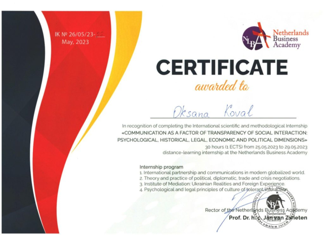Коваль Оксана Євгеніївна