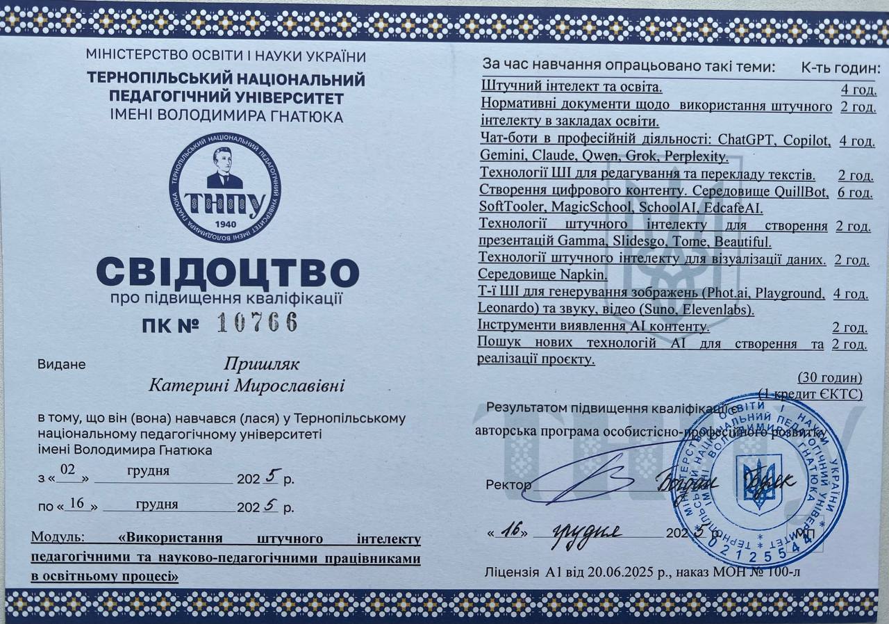 інтеграцію інструментів штучного інтелекту в освітню діяльність;